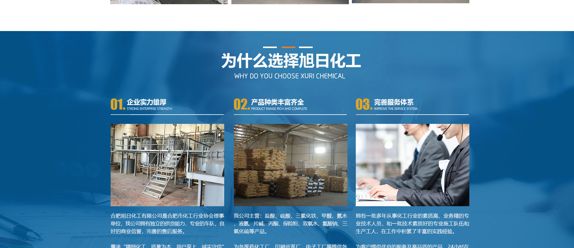 合肥旭日化工有限公司是合肥市化工行業(yè)協(xié)會理事單位,該公司擁有獨(dú)立的供貨能力,專業(yè)的車隊,良好的商業(yè)信譽(yù),完善的售后服務(wù)。秉承“精細(xì)化工、質(zhì)量為本、用戶至上、誠實(shí)守信”的企業(yè)理念。從事各類化工溶劑和原料的國內(nèi)貿(mào)易;為各醫(yī)1藥化工廠、印刷皮革廠、電子工廠等提供各種化工原料配套采購。目前,公司正朝著以貿(mào)易為基礎(chǔ)、以實(shí)業(yè)為依托,全球采購、全國銷售,內(nèi)外貿(mào)一體化,上下游一體化,具有綜合增值能力和復(fù)合競爭能力化工原料供應(yīng)商。本公司主要經(jīng)營的產(chǎn)品有:鹽酸、硫酸、三氯化鐵、甲醛、氨水、液氨、片堿等。合肥旭日化工有限公司為客戶提供優(yōu)良的服務(wù)及高品質(zhì)的產(chǎn)品,本公司經(jīng)銷的各種產(chǎn)品不僅在安徽地區(qū)深受用戶好評,而且具有很高的市場占有率,產(chǎn)品行銷全國各地區(qū)。